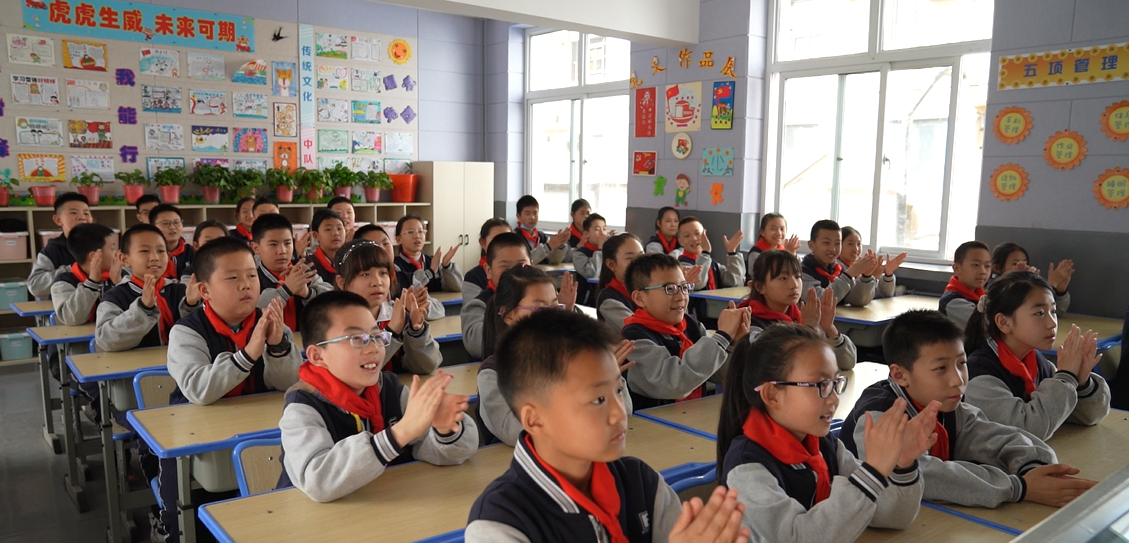杨柳湖学校教师张思奇:学校创新推出了“拼音闯关大冒险”课间游戏,把声母、韵母、整体认读音节设为“闯关的密码”,学生用双脚跳出拼音造型,配合声调律动,在欢笑声中就攻克了平翘舌音难点,他们通过跳跃、认读、组词完成了知识的巩固。一些以前比较内向的孩子现在主动牵头组队去闯关,孩子们在课堂上发言也积极了。