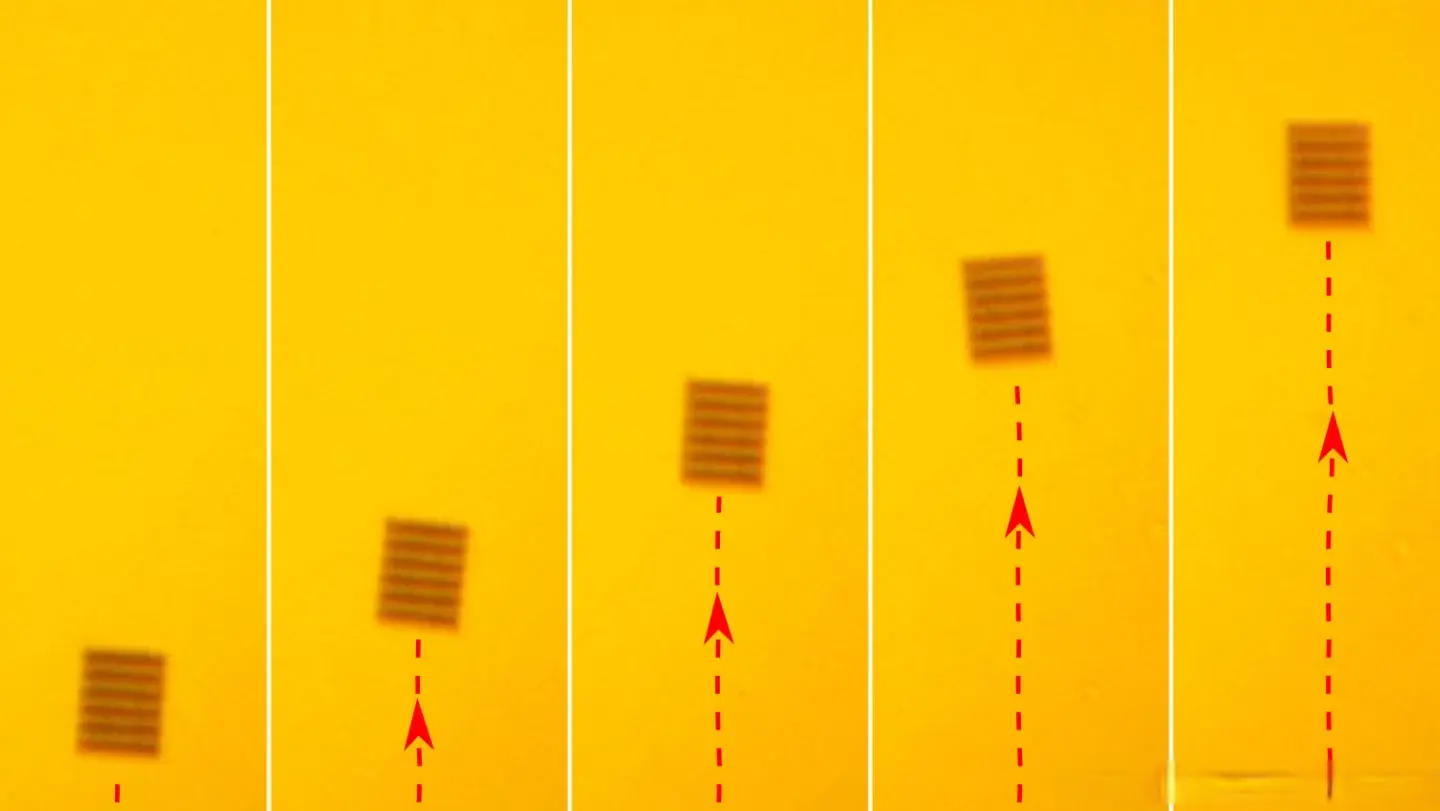 更关键的是,研究人员通过在超表面上设计不同区域的纳米图案组合,让装置能够同时产生多个方向的力,实现完整的三维机动能力。实验中,激光照射使原型机同时完成了悬浮和横向推进两个动作,在光操控领域,这是一个显著超越此前技术水平的控制精度。