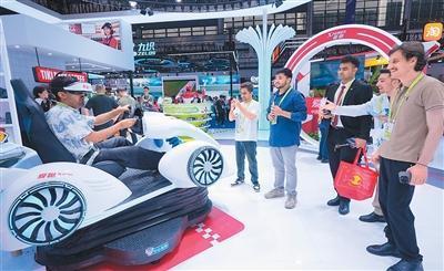 盛秋平介绍,第六届消博会聚焦绿色、健康、数字、智能等新型消费,集中亮相智能网联汽车、智能家居、AI眼镜等前沿科技产品。